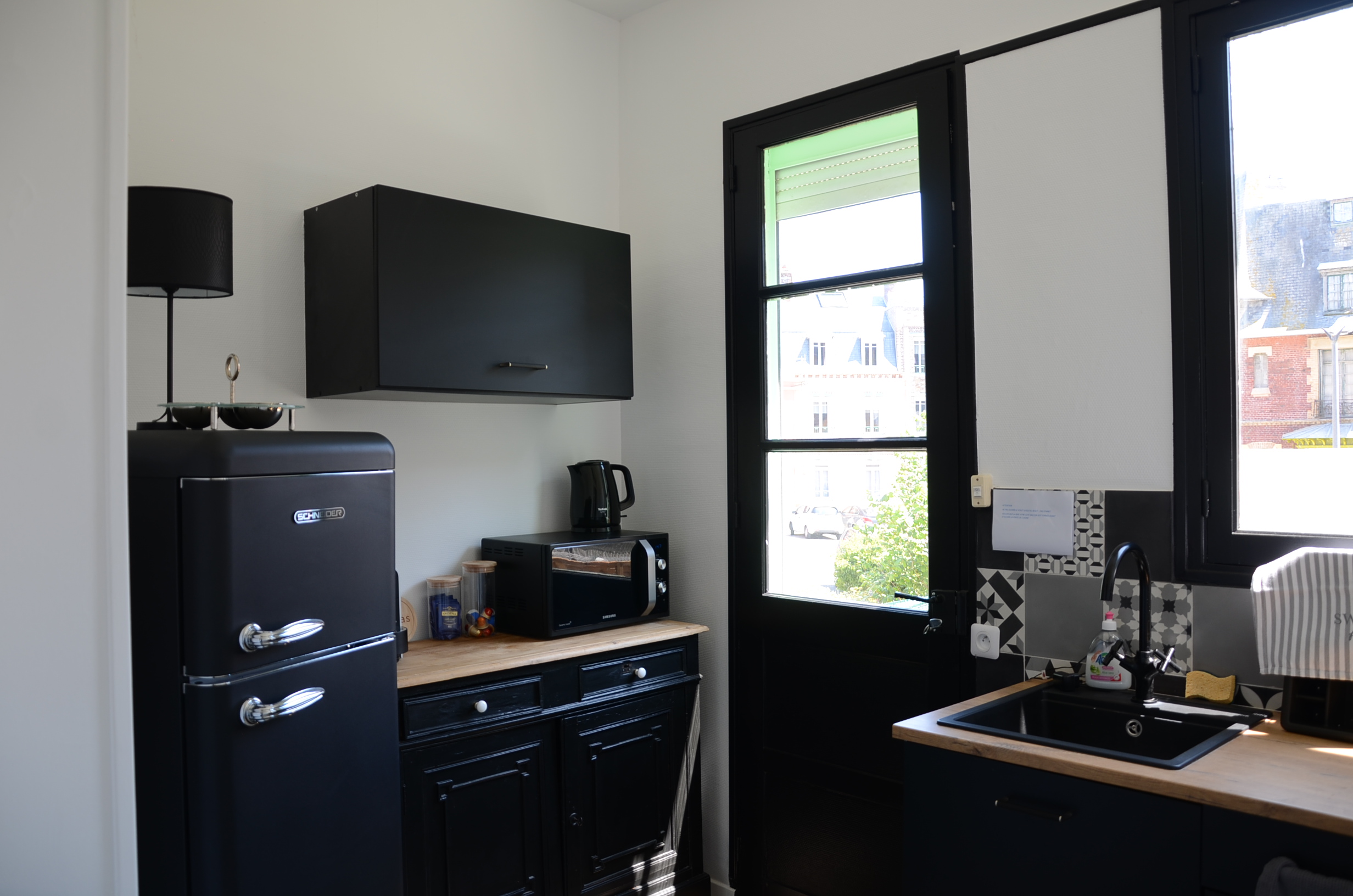 Un appartement est à votre disposition au rez-de-chaussée d’une villa à Mers-les-Bains avec vue face à la mer à 50m des cabines de plage et des galets. La villa de 55 m2 comprend une chambre à coucher avec un lit de 160 cm ainsi qu’un couchage pour 2 personnes dans le salon (140 cm), une salle de bain avec douche et WC. La cuisine est équipée d’un réfrigérateur, d’un congélateur, d’une machine à expresso, d’une bouilloire, d’une plaque à induction, d’un four à chaleur tournante et d’un micro-onde.
