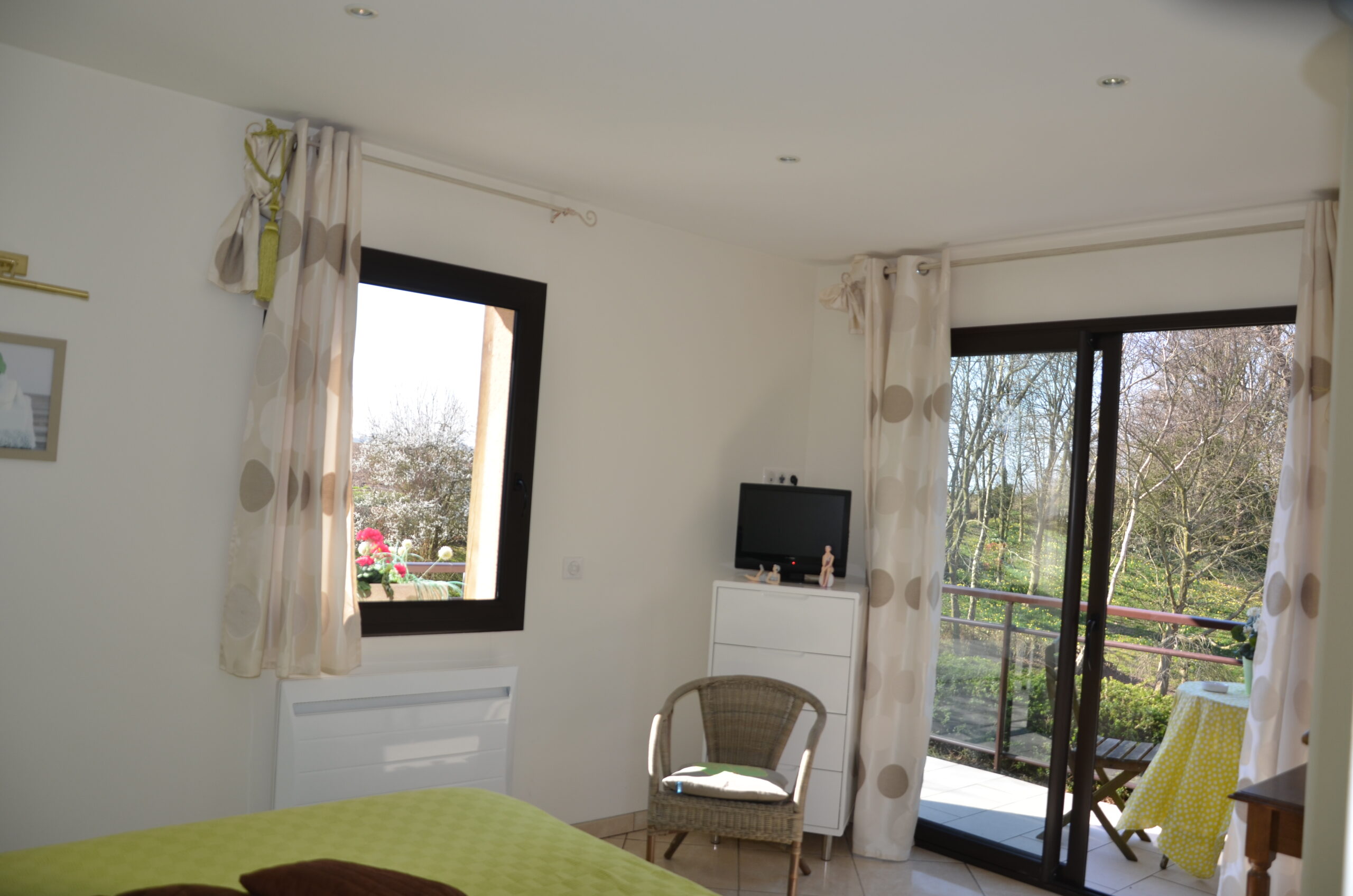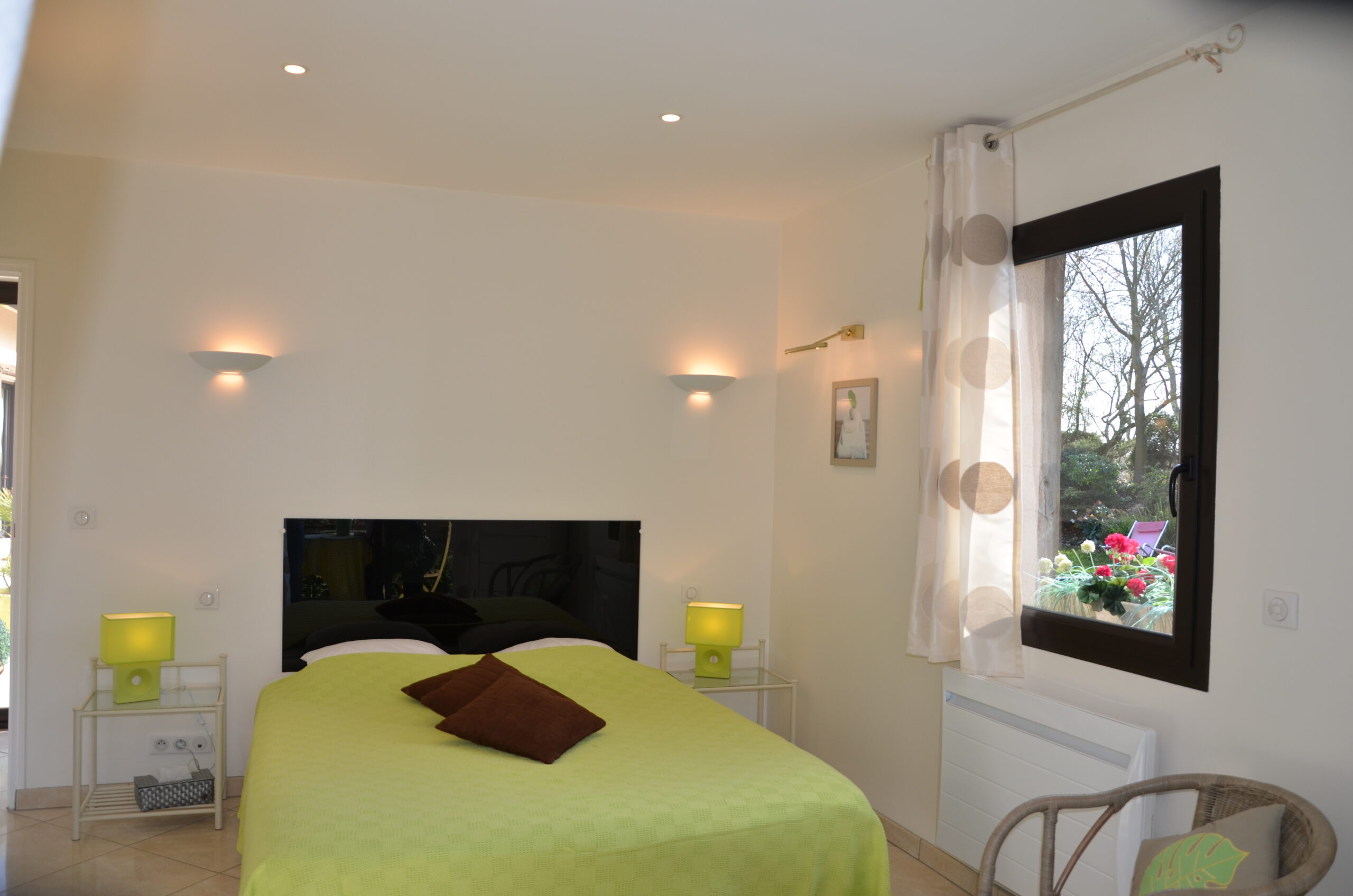 Décorée dans de douces nuances de vert, elle invite à la détente et à la sérénité, tout en offrant le même charme et le même confort que la chambre Les Oiseaux.